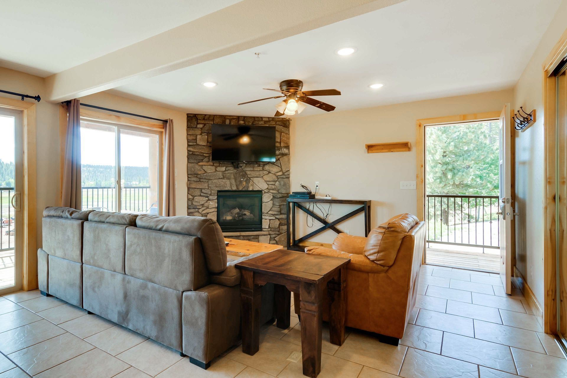 - Outdoor Enjoyment: Spacious balcony, gas grill (propane included), outdoor dining area, wood-burning fire pit, and on-site hiking trails.